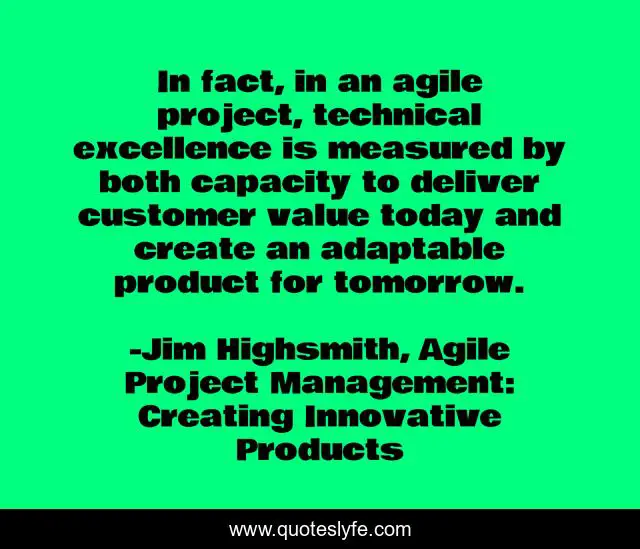 "Jim Highsmith, Agile Project Management: Creating Innovative Products Quotes." Quoteslyfe.com, 2025. Fri. 05 Dec. 2025. <https://www.quoteslyfe.com/quote/In-fact-in-an-agile-project-technical-194395>.