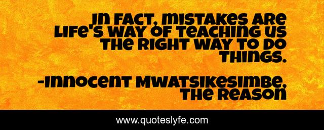 This page presents the quote "In fact, mistakes are life's way of teaching us the right way to do things.". Author of this quote is Innocent Mwatsikesimbe, The Reason. This quote is about motivation, success, failure, mistakes, learning, inspiration,.