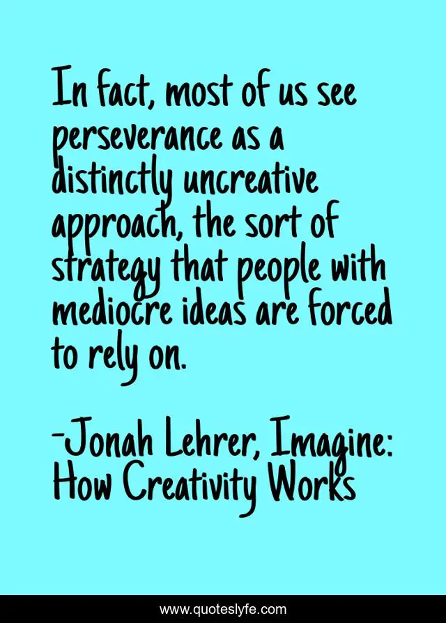This page presents the quote "In fact, most of us see perseverance as a distinctly uncreative approach, the sort of strategy that people with mediocre ideas are forced to rely on.". Author of this quote is Jonah Lehrer, Imagine: How Creativity Works. This quote is about perseverance, creativity,.