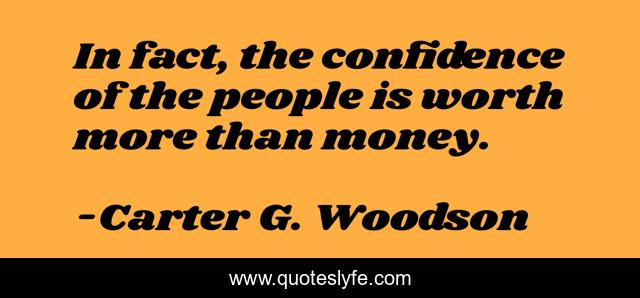 This page presents the quote "In fact, the confidence of the people is worth more than money.". Author of this quote is Carter G. Woodson. This quote is about confidence, fact, people,.
