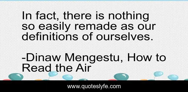 This page presents the quote "In fact, there is nothing so easily remade as our definitions of ourselves.". Author of this quote is Dinaw Mengestu, How to Read the Air. .