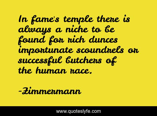 This page presents the quote "In fame's temple there is always a niche to be found for rich dunces importunate scoundrels or successful butchers of the human race.". Author of this quote is Zimmermann. .