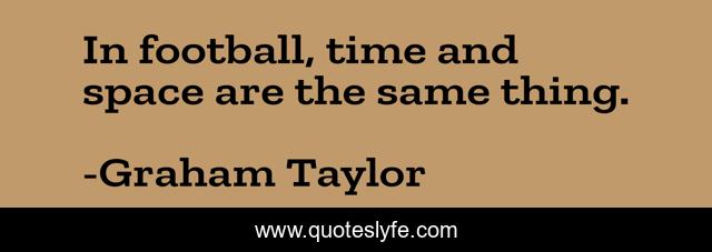 This page presents the quote "In football, time and space are the same thing.". Author of this quote is Graham Taylor. This quote is about football, time, space,.