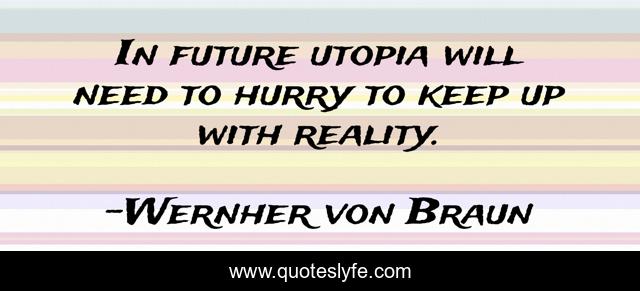 This page presents the quote "In future utopia will need to hurry to keep up with reality.". Author of this quote is Wernher von Braun. This quote is about utopia, future,.