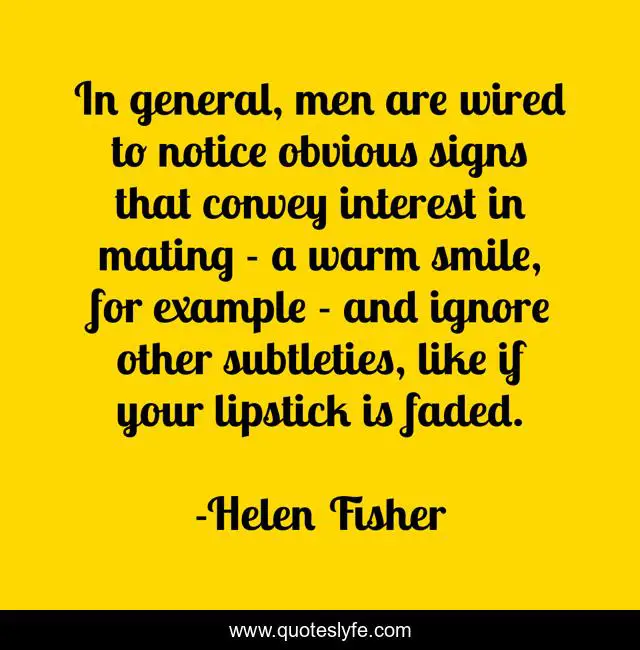 "Helen Fisher Quotes." Quoteslyfe.com, 2025. Sat. 06 Dec. 2025. <https://www.quoteslyfe.com/quote/In-general-men-are-wired-to-notice-324282>.