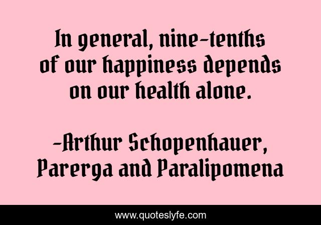 This page presents the quote "In general, nine-tenths of our happiness depends on our health alone.". Author of this quote is Arthur Schopenhauer, Parerga and Paralipomena. This quote is about health, happiness,.
