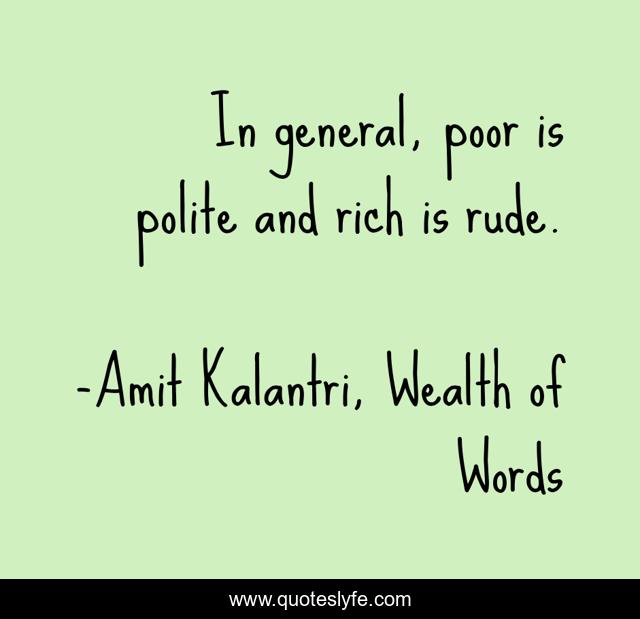 "Amit Kalantri, Wealth of Words Quotes." Quoteslyfe.com, 2025. Mon. 08 Dec. 2025. <https://www.quoteslyfe.com/quote/In-general-poor-is-polite-and-rich-23142>.