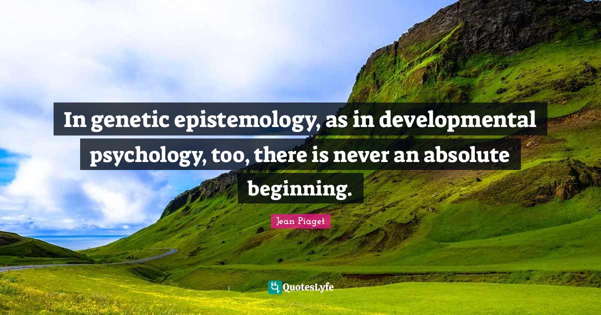 This page presents the quote "In genetic epistemology, as in developmental psychology, too, there is never an absolute beginning.". Author of this quote is Jean Piaget. This quote is about epistemology, developmental, psychology,.