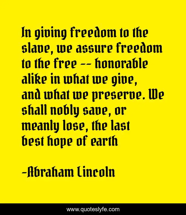 "Abraham Lincoln Quotes." Quoteslyfe.com, 2025. Fri. 05 Dec. 2025. <https://www.quoteslyfe.com/quote/In-giving-freedom-to-the-slave-we-191826>.