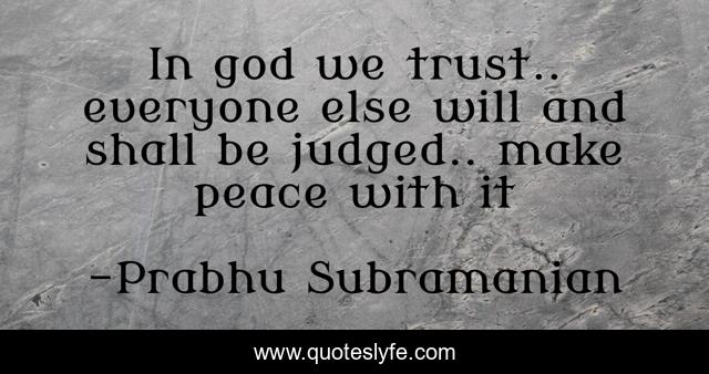 This page presents the quote "In god we trust.. everyone else will and shall be judged.. make peace with it". Author of this quote is Prabhu Subramanian. .