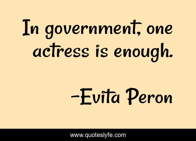 This page presents the quote "In government, one actress is enough.". Author of this quote is Evita Peron. This quote is about enough, actress,.
