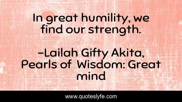 "Lailah Gifty Akita, Pearls of Wisdom: Great mind Quotes." Quoteslyfe.com, 2025. Mon. 08 Dec. 2025. <https://www.quoteslyfe.com/quote/In-great-humility-we-find-our-strength-104484>.