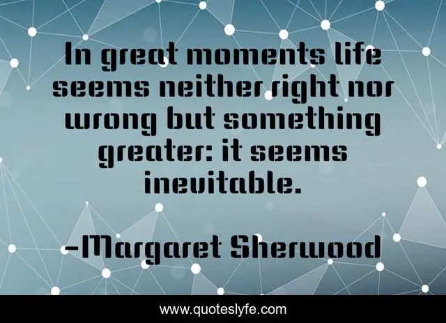 This page presents the quote "In great moments life seems neither right nor wrong but something greater: it seems inevitable.". Author of this quote is Margaret Sherwood. .