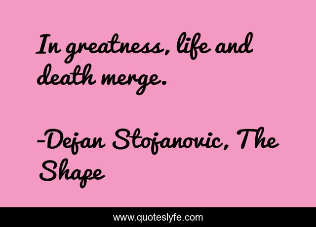 "Dejan Stojanovic, The Shape Quotes." Quoteslyfe.com, 2025. Sat. 06 Dec. 2025. <https://www.quoteslyfe.com/quote/In-greatness-life-and-death-merge-112277>.