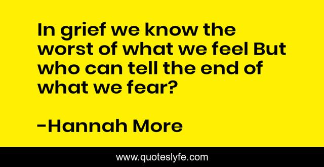 This page presents the quote "In grief we know the worst of what we feel But who can tell the end of what we fear?". Author of this quote is Hannah More. .
