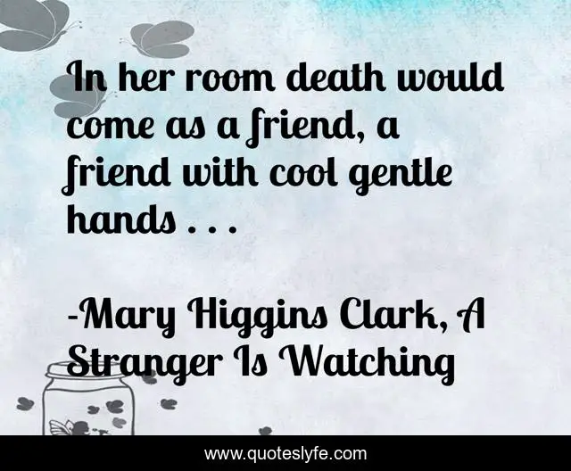This page presents the quote "In her room death would come as a friend, a friend with cool gentle hands . . .". Author of this quote is Mary Higgins Clark, A Stranger Is Watching. This quote is about death-and-dying, sad,.