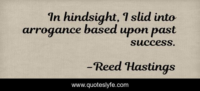 This page presents the quote "In hindsight, I slid into arrogance based upon past success.". Author of this quote is Reed Hastings. This quote is about past, arrogance, hindsight,.