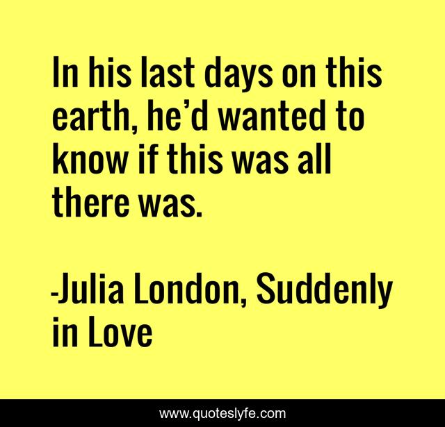 This page presents the quote "In his last days on this earth, he’d wanted to know if this was all there was.". Author of this quote is Julia London, Suddenly in Love. .