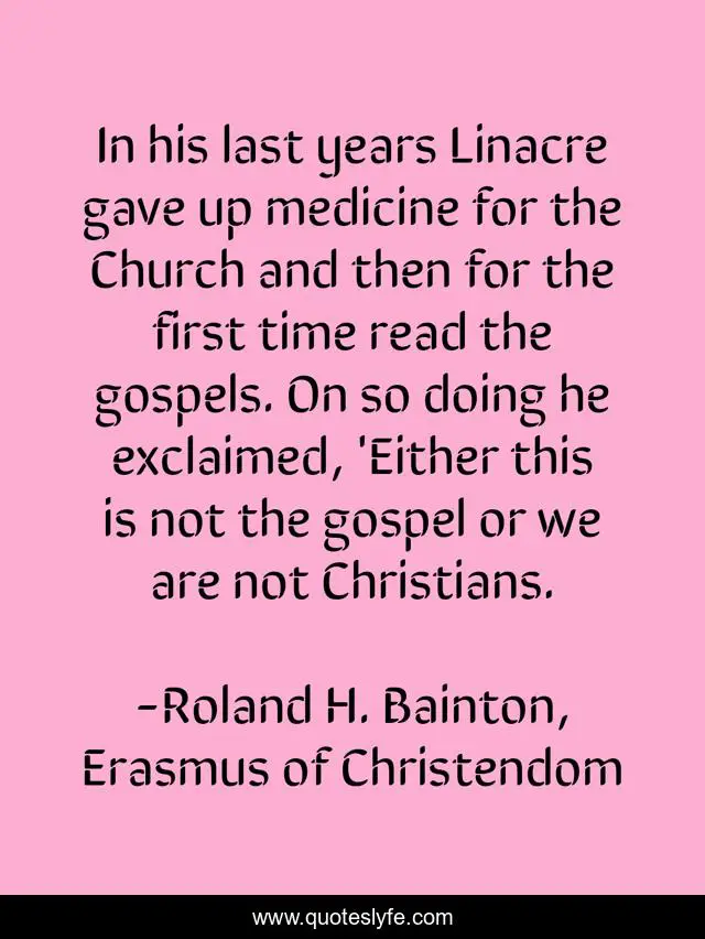 "Roland H. Bainton, Erasmus of Christendom Quotes." Quoteslyfe.com, 2025. Tue. 09 Dec. 2025. <https://www.quoteslyfe.com/quote/In-his-last-years-Linacre-gave-up-30380>.