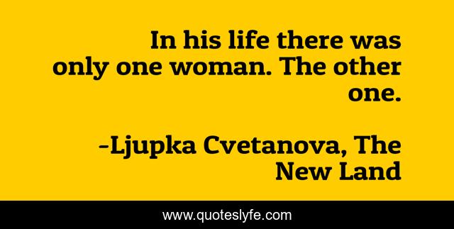 This page presents the quote "In his life there was only one woman. The other one.". Author of this quote is Ljupka Cvetanova, The New Land. This quote is about life, aphorism, love-blind, humorous, quote, only-one-love, the-other-woman, woman, humor,.