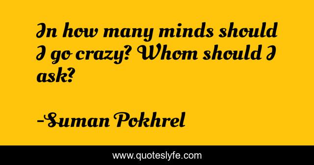 This page presents the quote "In how many minds should I go crazy? Whom should I ask?". Author of this quote is Suman Pokhrel. This quote is about ditermination, madness, crazyness,.