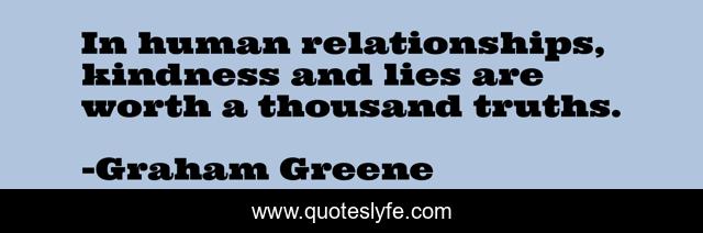 This page presents the quote "In human relationships, kindness and lies are worth a thousand truths.". Author of this quote is Graham Greene. This quote is about relationships, kindness,.