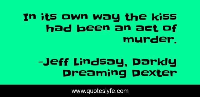 This page presents the quote "In its own way the kiss had been an act of murder.". Author of this quote is Jeff Lindsay, Darkly Dreaming Dexter. This quote is about murder, kiss,.