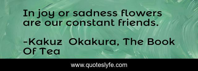 "Kakuzō Okakura, The Book Of Tea Quotes." Quoteslyfe.com, 2025. Fri. 05 Dec. 2025. <https://www.quoteslyfe.com/quote/In-joy-or-sadness-flowers-are-our-246784>.