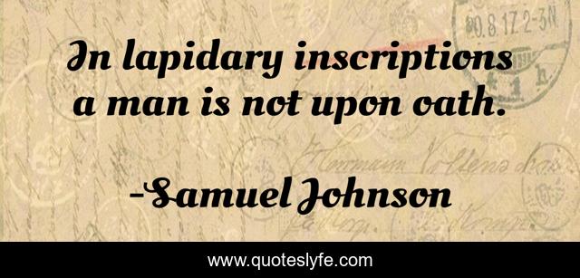 This page presents the quote "In lapidary inscriptions a man is not upon oath.". Author of this quote is Samuel Johnson. This quote is about flattery, praise,.