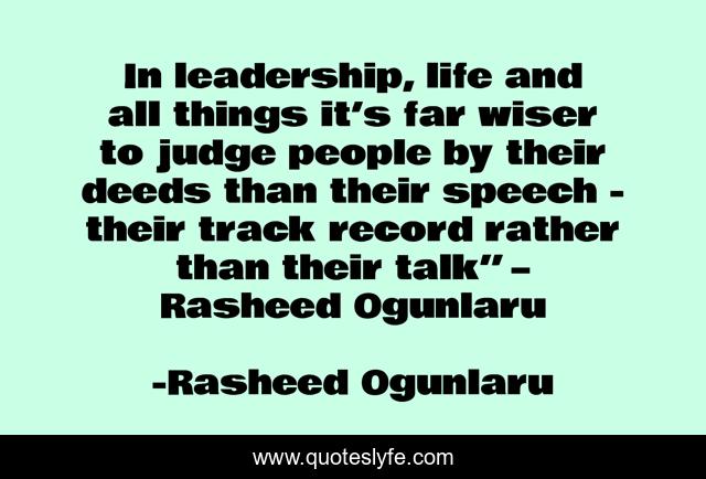 In leadership, life and all things it’s far wiser to judge people by their deeds than their speech - their track record rather than their talk” – Rasheed Ogunlaru