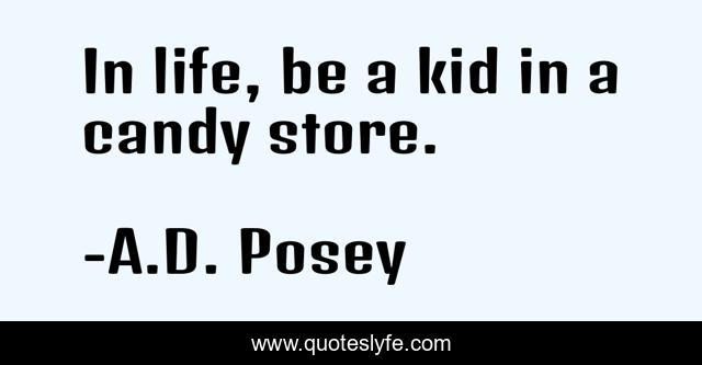This page presents the quote "In life, be a kid in a candy store.". Author of this quote is A.D. Posey. This quote is about be, life, storytelling, candy-store, storytellers, story, writing, write, writers,.