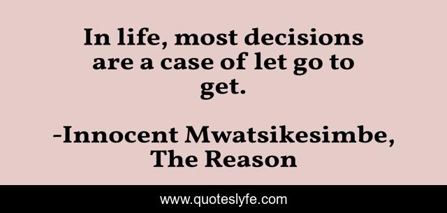 This page presents the quote "In life, most decisions are a case of let go to get.". Author of this quote is Innocent Mwatsikesimbe, The Reason. This quote is about life, decision-making, self-improvement, self-help, decisions, inspiration,.