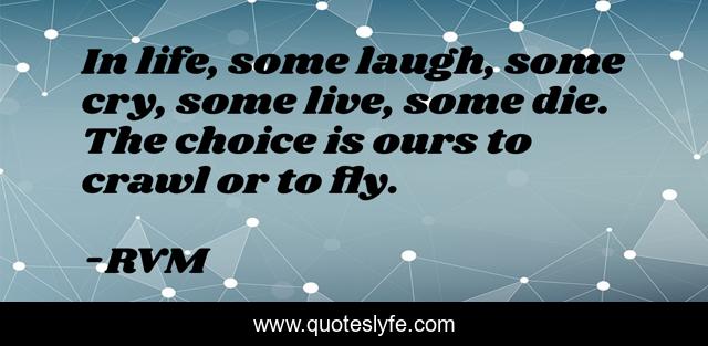 This page presents the quote "In life, some laugh, some cry, some live, some die. The choice is ours to crawl or to fly.". Author of this quote is RVM. This quote is about motivation, inspiration,.
