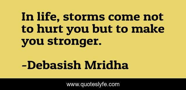 This page presents the quote "In life, storms come not to hurt you but to make you stronger.". Author of this quote is Debasish Mridha. This quote is about miraboli, storms-make-you-stronger, oscar-wilde, philosophy, debasish-mridha, gandhi, quotes, storms-of-life, inspirational,.