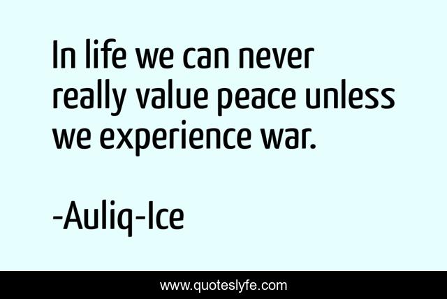 This page presents the quote "In life we can never really value peace unless we experience war.". Author of this quote is Auliq-Ice. This quote is about change, happiness, inspirational, enthusiasm, life-challenges, hope, problems-in-life,.
