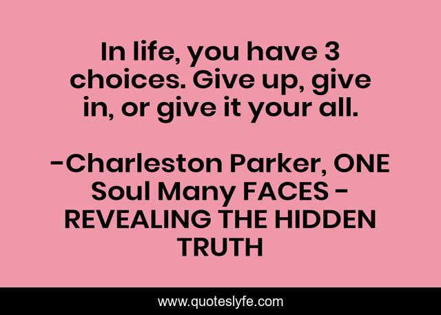 "Charleston Parker, ONE Soul Many FACES - REVEALING THE HIDDEN TRUTH Quotes." Quoteslyfe.com, 2025. Fri. 05 Dec. 2025. <https://www.quoteslyfe.com/quote/In-life-you-have-3-choices-Give-139572>.