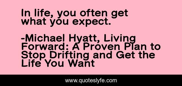 This page presents the quote "In life, you often get what you expect.". Author of this quote is Michael Hyatt, Living Forward: A Proven Plan to Stop Drifting and Get the Life You Want. This quote is about personal-development, intentional-living, expectations, life-plan,.