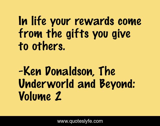 This page presents the quote "In life your rewards come from the gifts you give to others.". Author of this quote is Ken Donaldson, The Underworld and Beyond: Volume 2. This quote is about children-s-books, storytelling, fiction,.