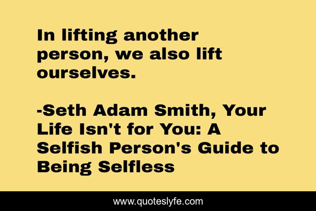 "Seth Adam Smith, Your Life Isn't for You: A Selfish Person's Guide to Being Selfless Quotes." Quoteslyfe.com, 2025. Sat. 06 Dec. 2025. <https://www.quoteslyfe.com/quote/In-lifting-another-person-we-also-lift-97469>.