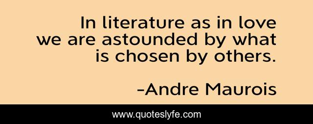 This page presents the quote "In literature as in love we are astounded by what is chosen by others.". Author of this quote is Andre Maurois. .