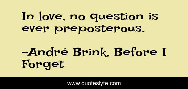 "André Brink, Before I Forget Quotes." Quoteslyfe.com, 2025. Fri. 05 Dec. 2025. <https://www.quoteslyfe.com/quote/In-love-no-question-is-ever-preposterous-293>.