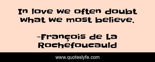 This page presents the quote "In love we often doubt what we most believe.". Author of this quote is François de La Rochefoucauld. This quote is about doubt, love, affection,.