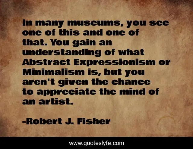 This page presents the quote "In many museums, you see one of this and one of that. You gain an understanding of what Abstract Expressionism or Minimalism is, but you aren't given the chance to appreciate the mind of an artist.". Author of this quote is Robert J. Fisher. This quote is about artist, mind, understanding,.