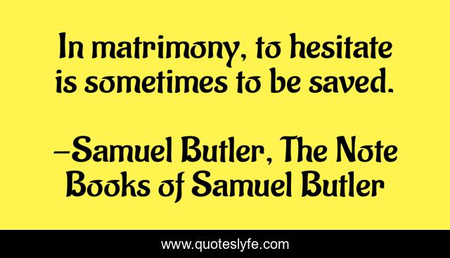 "Samuel Butler, The Note Books of Samuel Butler Quotes." Quoteslyfe.com, 2025. Fri. 05 Dec. 2025. <https://www.quoteslyfe.com/quote/In-matrimony-to-hesitate-is-sometimes-to-76722>.