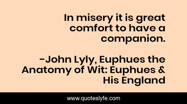 "John Lyly, Euphues the Anatomy of Wit: Euphues & His England Quotes." Quoteslyfe.com, 2025. Tue. 09 Dec. 2025. <https://www.quoteslyfe.com/quote/In-misery-it-is-great-comfort-to-230170>.