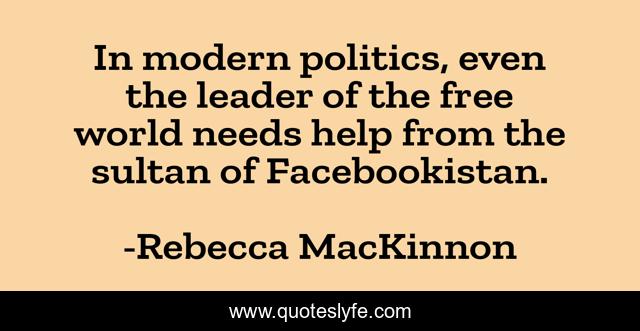 This page presents the quote "In modern politics, even the leader of the free world needs help from the sultan of Facebookistan.". Author of this quote is Rebecca MacKinnon. This quote is about facebookistan, politics, facebook,.