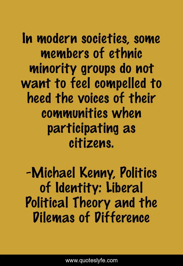 "Michael Kenny, Politics of Identity: Liberal Political Theory and the Dilemas of Difference Quotes." Quoteslyfe.com, 2025. Fri. 05 Dec. 2025. <https://www.quoteslyfe.com/quote/In-modern-societies-some-members-of-ethnic-219905>.
