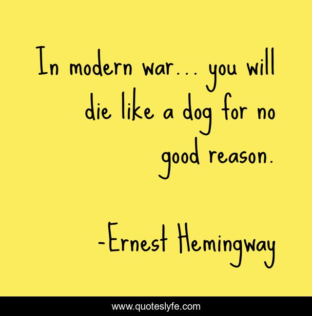 This page presents the quote "In modern war... you will die like a dog for no good reason.". Author of this quote is Ernest Hemingway. This quote is about good, dog,.