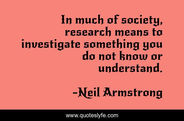 This page presents the quote "In much of society, research means to investigate something you do not know or understand.". Author of this quote is Neil Armstrong. .