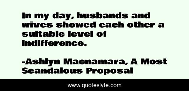 This page presents the quote "In my day, husbands and wives showed each other a suitable level of indifference.". Author of this quote is Ashlyn Macnamara, A Most Scandalous Proposal. This quote is about indifference, marriage, display, husband, wife,.